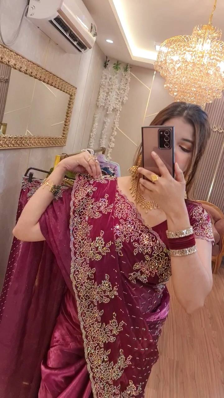 NC stone work এর ধারা সম্পূর্ণ শাড়ি জুড়ে কাজ করা