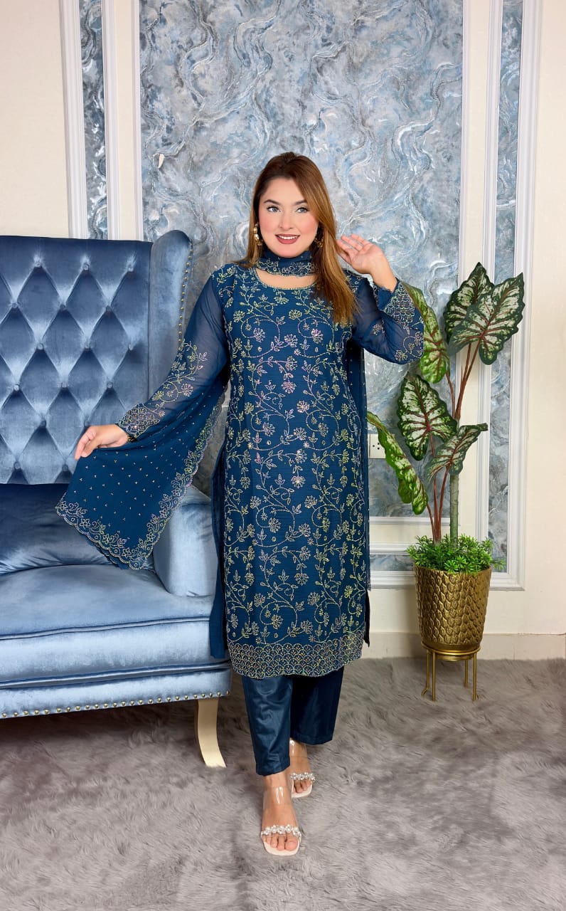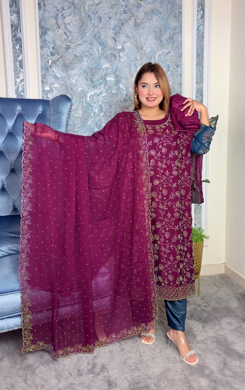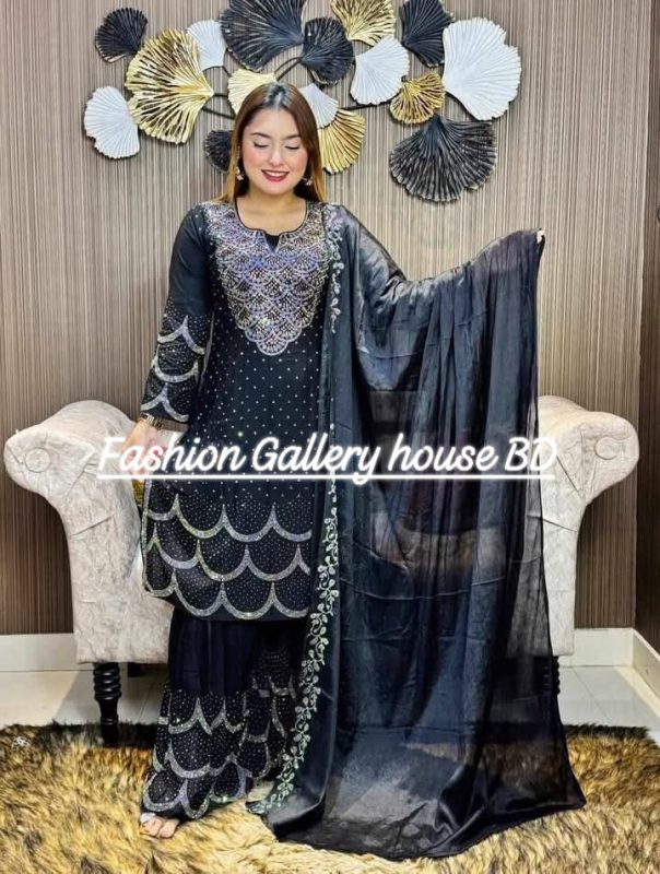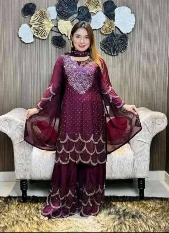মালোশিয়ান এম সি স্টোন দিয়ে ফুল বডি কাজ করা তার সাথে পাবেন পুরো ওড়না জুড়ে গর্জিয়া কাজ করা পাথর দিয়ে।