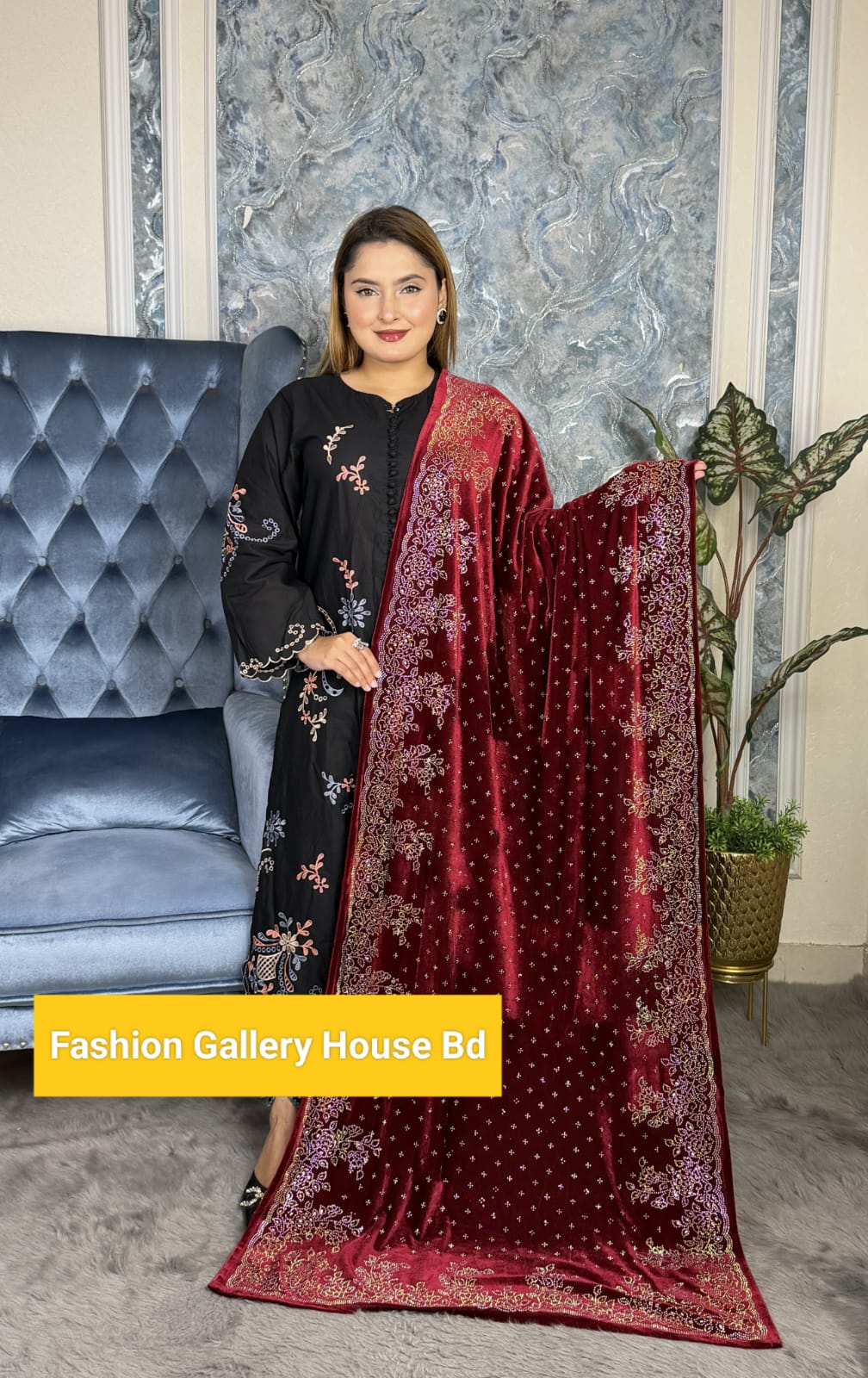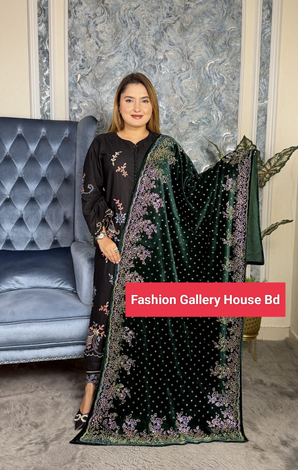 শীতের ছোঁয়ায় রাণীর আভিজাত্য! এই শীতে নিজেকে করুন আরও লাক্সারিয়াস ✨ #PremiumVelvet#bridalshwal ঝলমল করবে পুরো লুক — কারণ এতে আছে মালয়েশিয়ান ক্রিস্টাল স্টোন ফিনিশ!